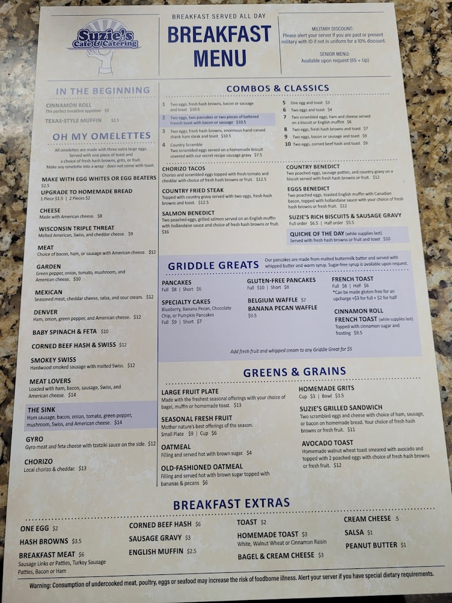 However, it's not just food that you'll find here; the hospitality shines through. Owner Suzie is often seen creating a personal touch, treating guests to complimentary cinnamon rolls and ensuring everyone feels like part of the family. This dedication to service is frequently noted by visitors, making each visit to Suzie’s feel special.