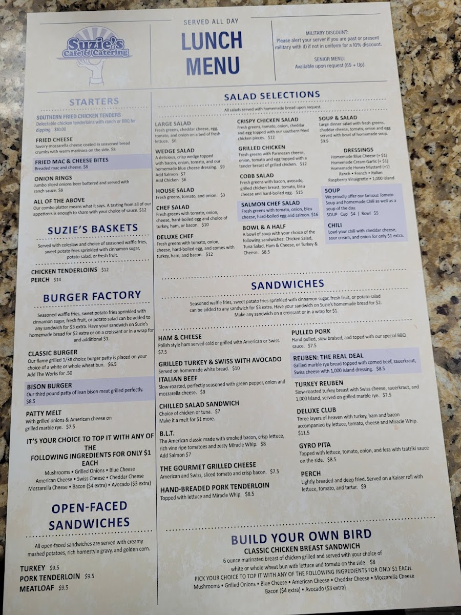 Welcome to Suzie's Cafe & Catering, a delightful gem nestled in the heart of Valparaiso, Indiana. A popular local spot, this cafe is famed for its welcoming atmosphere and mouthwatering menu that caters to all tastes.