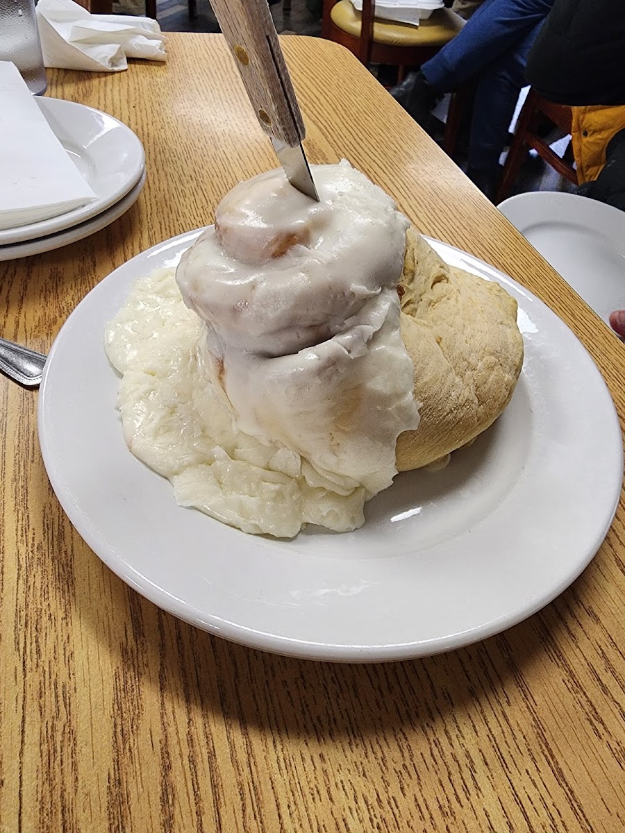 The menu is a well-curated selection of hearty dishes and comfort food staples. Begin your day with the Country Benedict, a fan favorite that combines rich flavors and a satisfying portion size. For those who crave something sweet, don’t miss the Cinnamon Roll French Toast, which is so generous you'll likely want to share—but it's too tempting not to finish on your own!